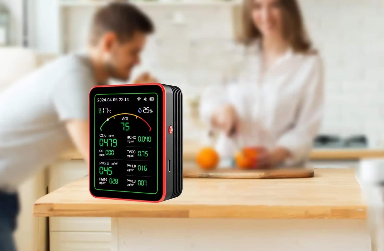 Comprehensive monitoring including PM2.5, formaldehyde, TVOC, temperature, and humidity provides complete indoor air quality assessment beyond just CO2 levels.