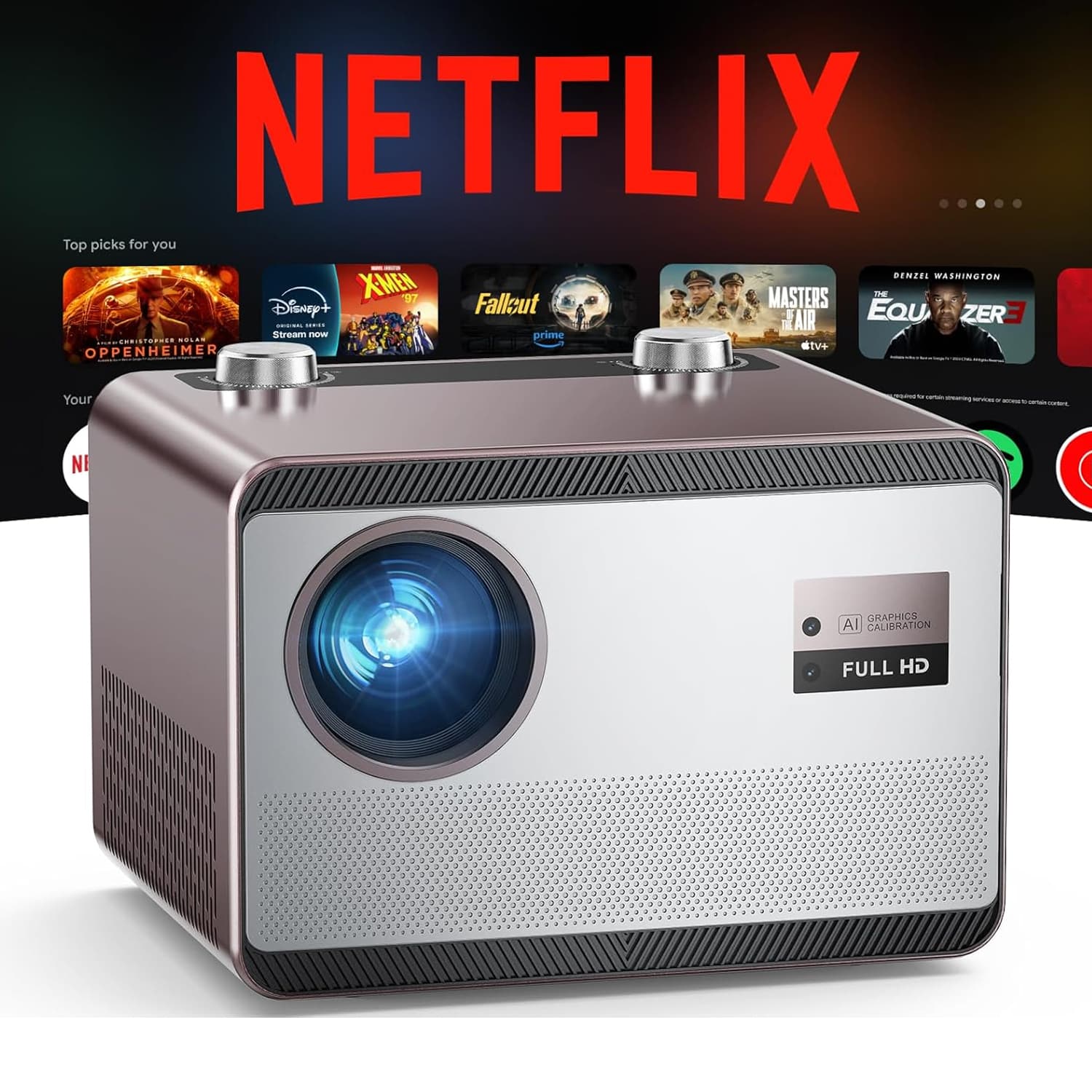 The HAPPRUN Light Projector Outdoor distinguishes itself as the only projector in this lineup with official Netflix licensing, providing seamless one-touch access to Netflix, Prime Video, YouTube, Disney+, and over 10,000 streaming applications.