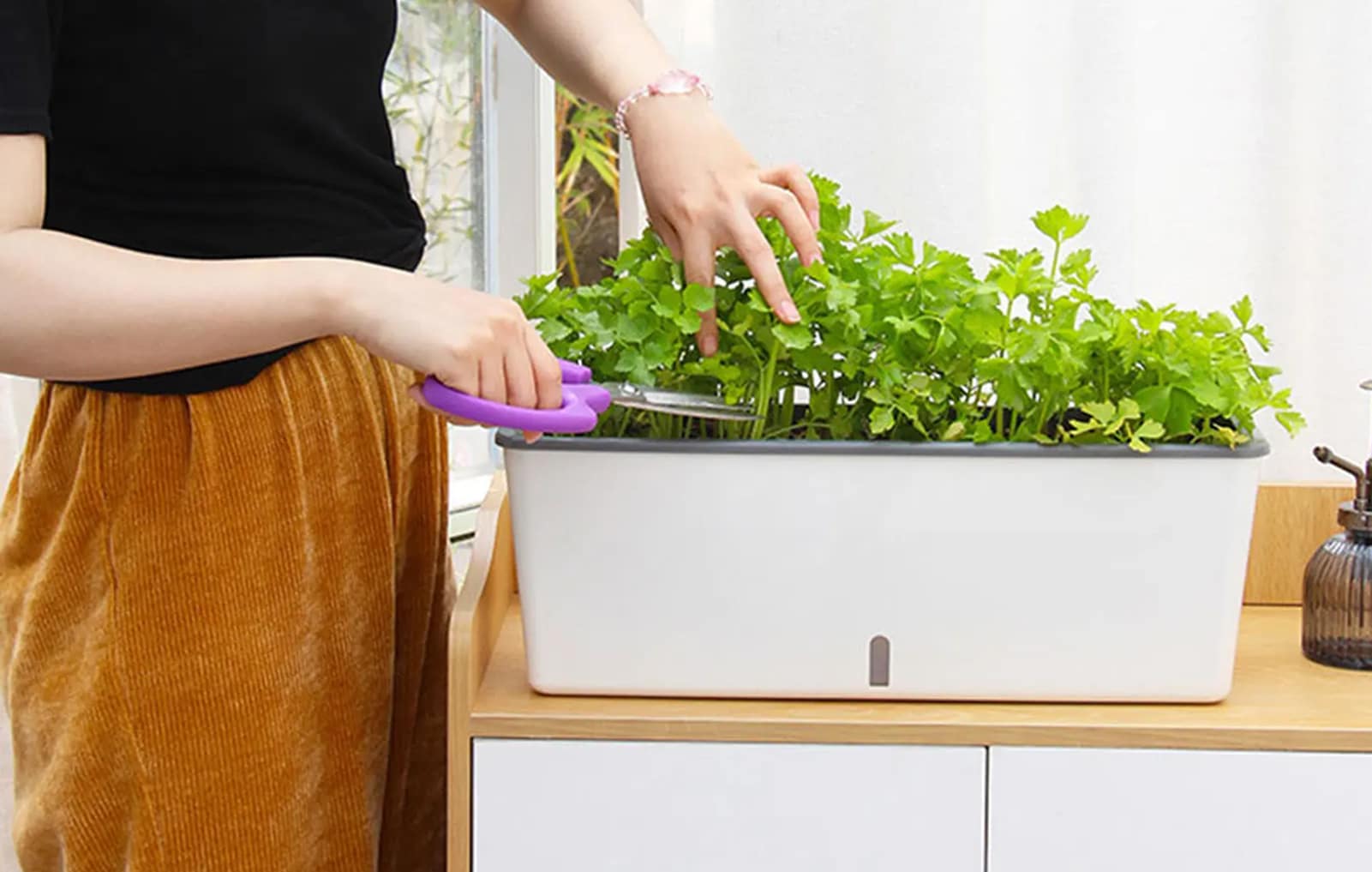 The intelligent water reservoir system maintains optimal soil aeration while delivering precise moisture levels for over a month of autonomous operation. The hidden handle design in the inner bucket facilitates easy plant replacement and prevents contamination of the outer reservoir, making maintenance remarkably simple.