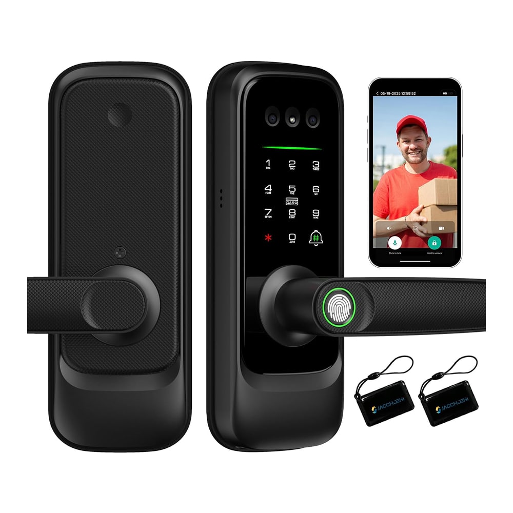 What truly distinguishes Jacchozhi is its 24-hour human detection system that activates upon approach, automatically illuminating the keypad and launching facial recognition before you even reach the door. The built-in infrared camera delivers night vision up to 3 meters with a 160-degree wide-angle lens, while noise-canceling microphone and speaker enable true duplex audio communication. Built-in WiFi connectivity allows complete remote management through the dedicated app, including temporary password generation for guests and real-time activity monitoring.