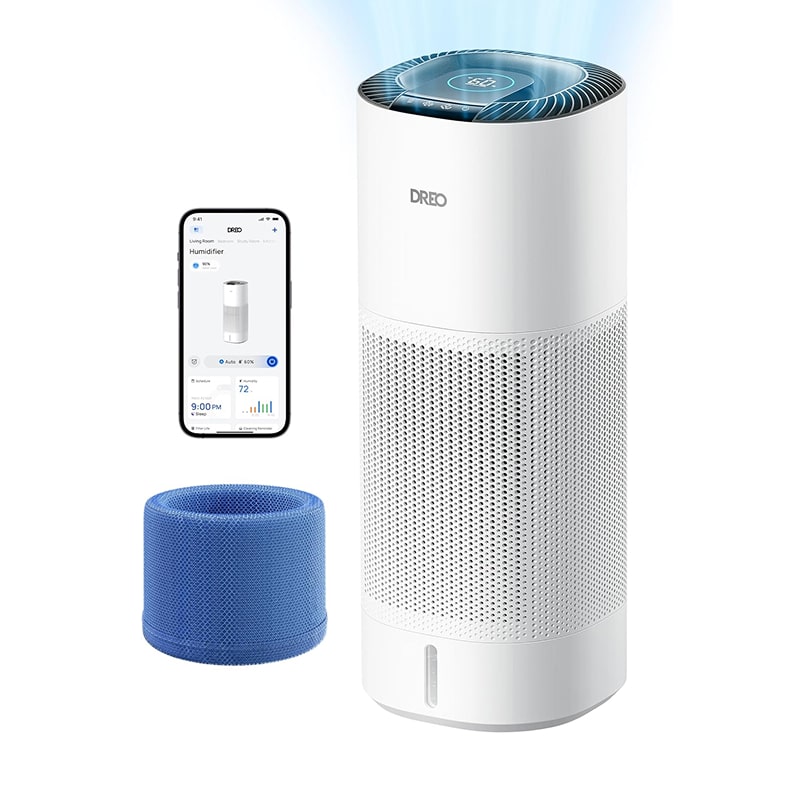 The Dreo Smart Humidifier represents cutting-edge evaporative technology with impressive 800ml/h ultra-fine vapor output featuring microscopic 0.0004μm particles that distribute evenly throughout spaces up to 1000 square feet. This mist-free humidification approach prevents the white powder residue and wet surface problems associated with traditional ultrasonic models, protecting furniture, electronics, and hardwood floors from moisture damage while delivering clean, healthy air.