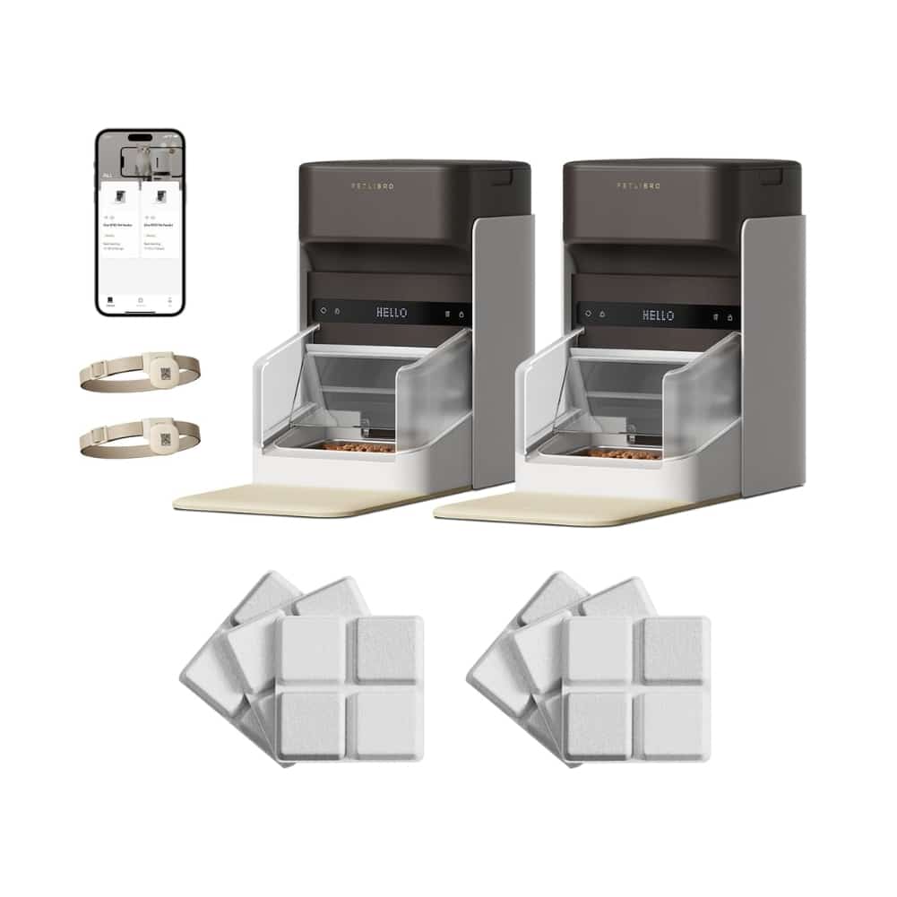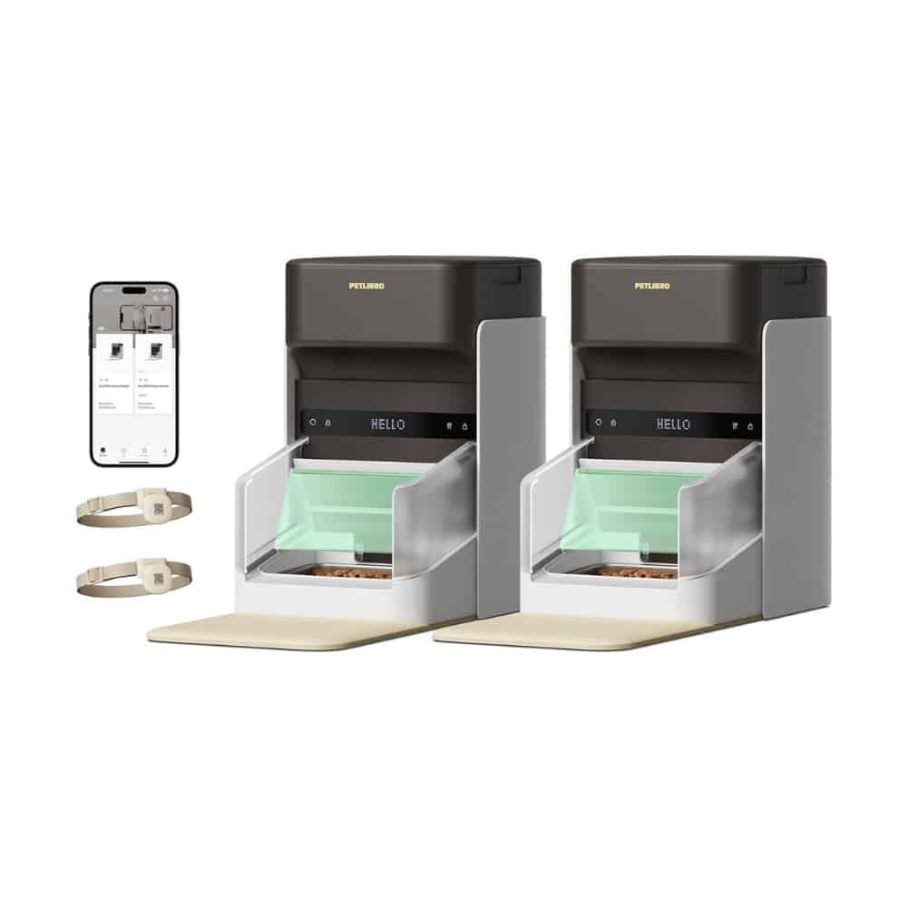 The PETLIBRO RFID Smart Pet Feeder represents a specialized solution for two-cat households requiring completely independent feeding management. This matched pair operates simultaneously yet maintains separate schedules, portion controls, and RFID recognition for each cat.
