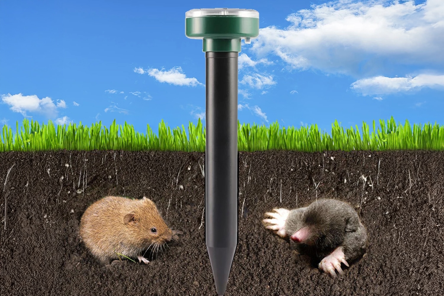 The installation process couldn't be simpler - just push the stake into the ground and let the sun do the rest. This completely chemical-free solution represents a significant advancement in eco-friendly pest control, eliminating the need for harmful pesticides or traps that can endanger pets and wildlife.