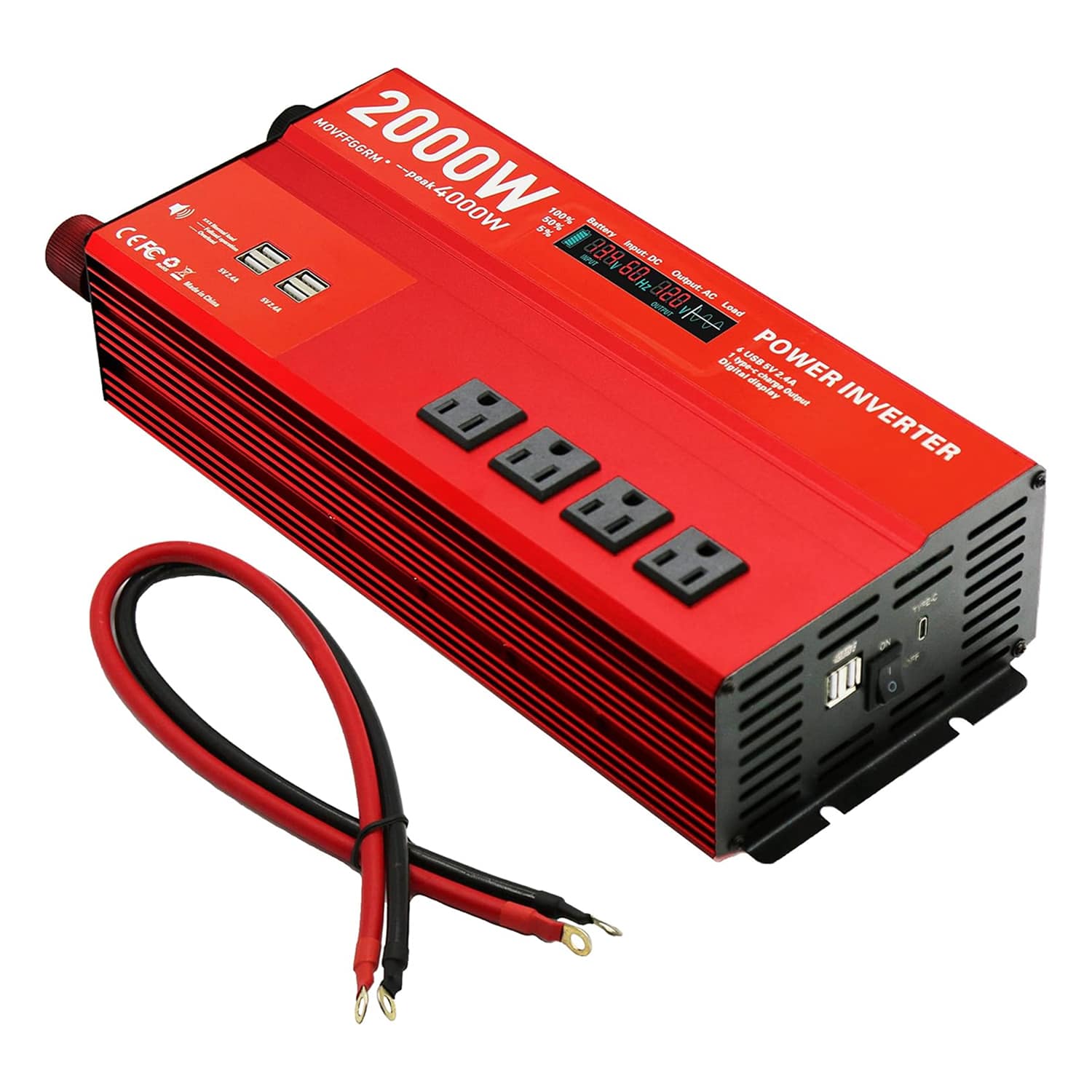 The MOVFFGGRM 2000W Inverter offers substantial power in a modified sine wave package. Its 2000W continuous output with 4000W peak capacity makes it suitable for various high-demand applications.