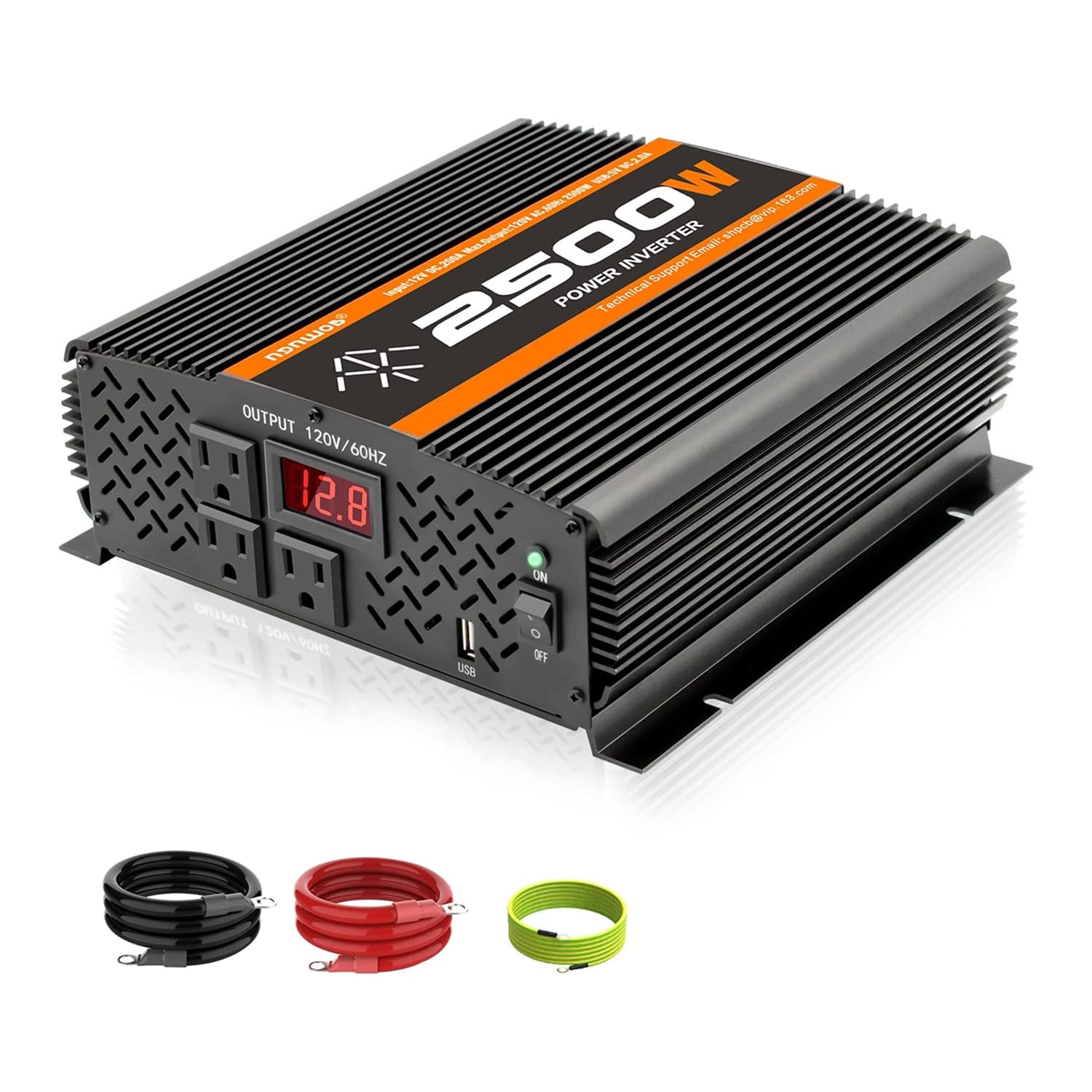 The TVNIKD 2500W Power Inverter delivers impressive output capacity for demanding applications. With 2500W continuous power and 5000W peak, it can handle heavy loads like power tools and appliances.